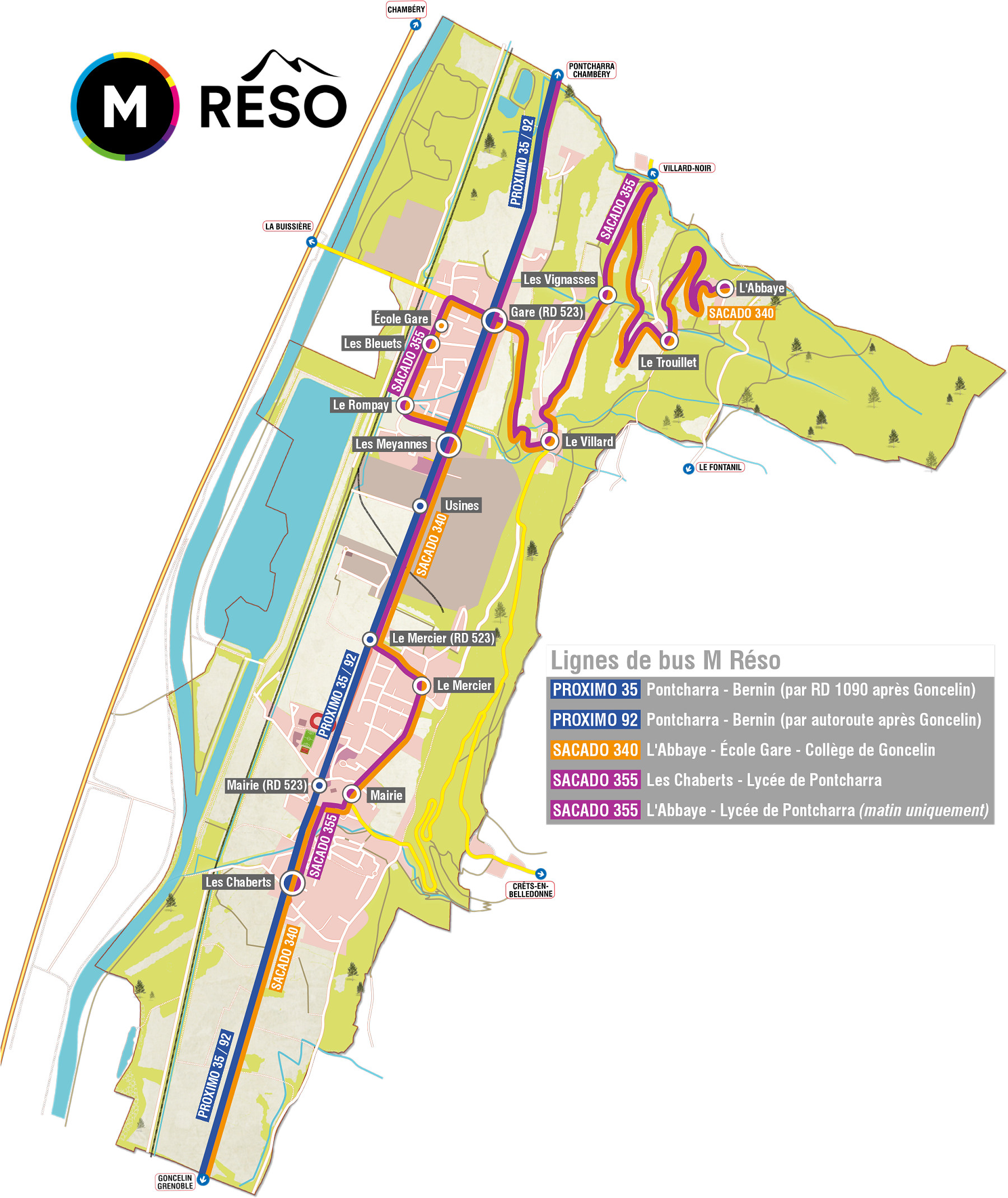 La ligne Proximo 35 circule entre Bernin et Pontcharra du lundi au vendredi, de 6h à 21h, avec un passage toutes les heures ou toutes les demi heures en heure de pointe. De nombreuses correspondances sont prévues avec les bus et trains en gares de Goncelin et Pontcharra.